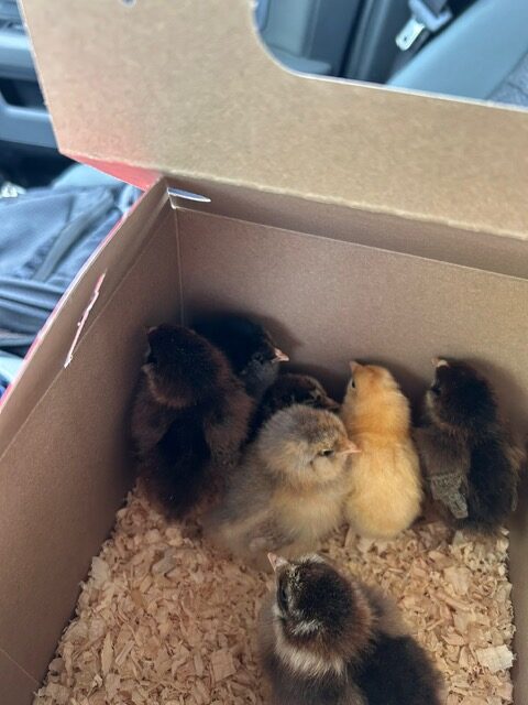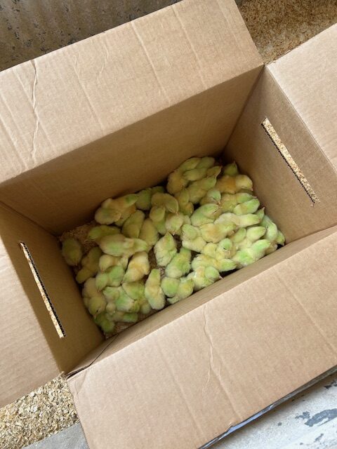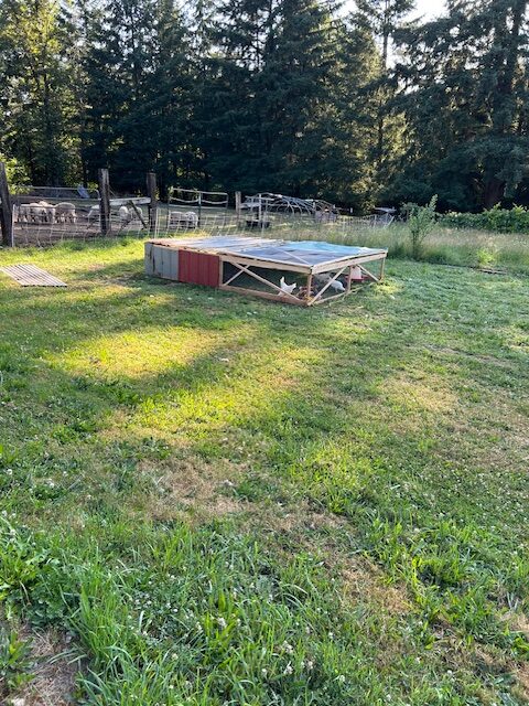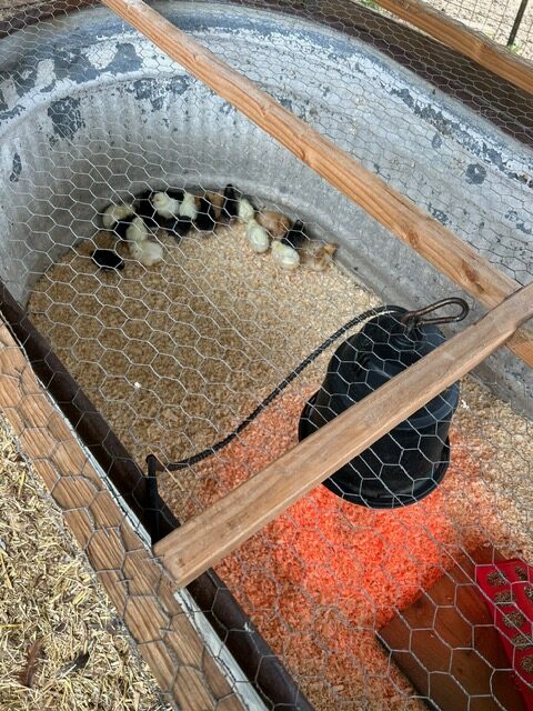 Meat chickens have arrived! This summer we are raising 50 meat chickens from chick to chicken nugget. We will rotationally graze them in a chicken tractor made with a design from Joel Salatin, owner of Polyface Farms in Virginia. Currently, the layers are testing it out.